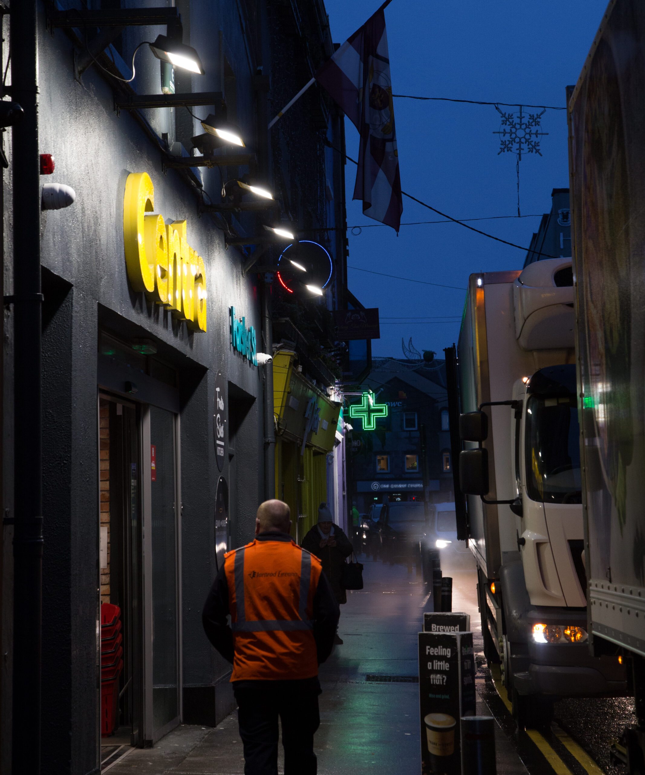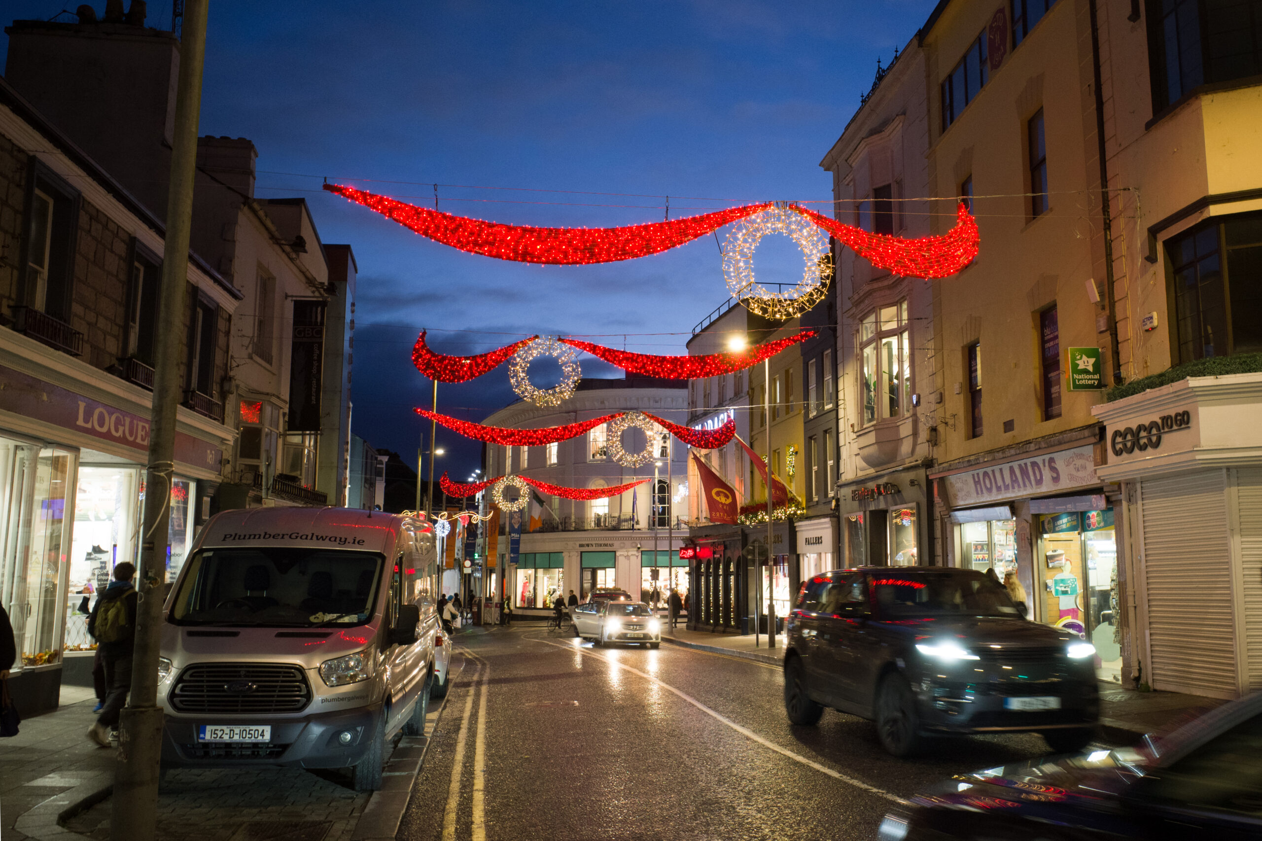アイルランド西部、Galway(ゴールウェイ)の霧雨に煙る街の夜歩き写真 その2